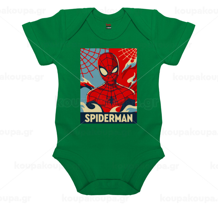 Spiderman kid, Βρεφικό φορμάκι μωρού, ΠΡΑΣΙΝΟ, 100% Organic Cotton, κοντομάνικο