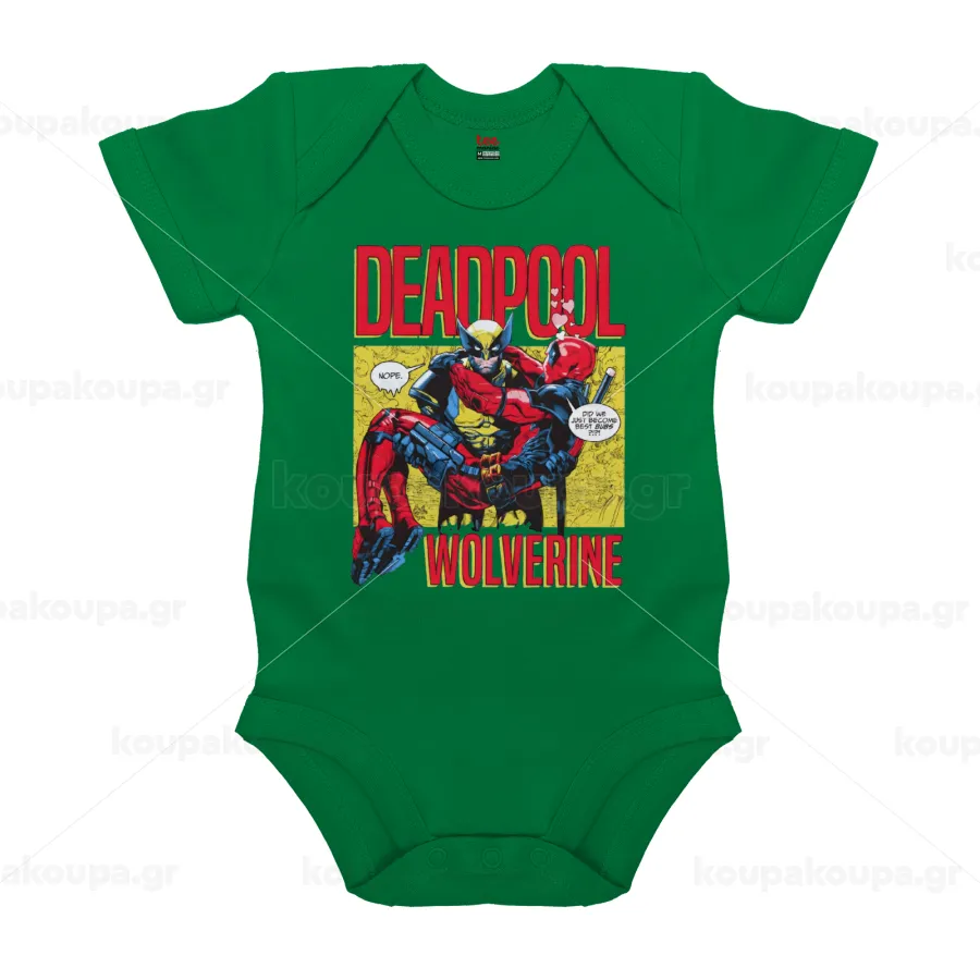 Superhero Deadpool Wolverine, Βρεφικό φορμάκι μωρού, ΠΡΑΣΙΝΟ, 100% Organic Cotton, κοντομάνικο
