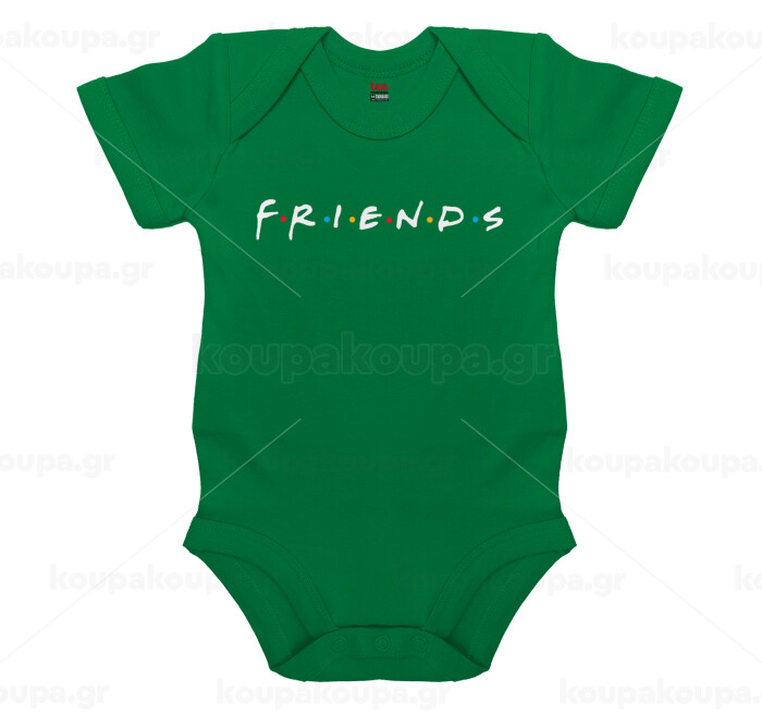 Friends, Βρεφικό φορμάκι μωρού, ΠΡΑΣΙΝΟ, 100% Organic Cotton, κοντομάνικο