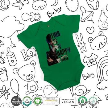 Wednesday, This is my happy face, Βρεφικό φορμάκι μωρού, ΠΡΑΣΙΝΟ, 100% Organic Cotton, κοντομάνικο