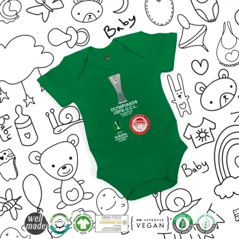 Ολυμπιακός νικητής UEFA Europa Conference League Champion 2023/24, Βρεφικό φορμάκι μωρού, ΠΡΑΣΙΝΟ, 100% Organic Cotton, κοντομάνικο