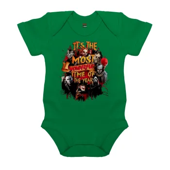 Halloween it's most wonderful time of the year, Βρεφικό φορμάκι μωρού, ΠΡΑΣΙΝΟ, 100% Organic Cotton, κοντομάνικο