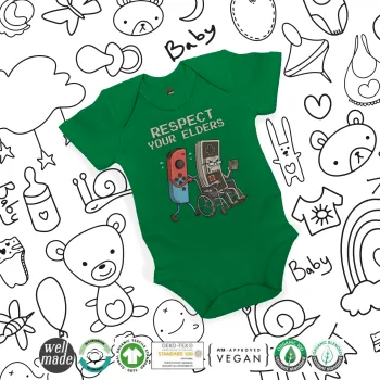Respect your Elders, Βρεφικό φορμάκι μωρού, ΠΡΑΣΙΝΟ, 100% Organic Cotton, κοντομάνικο