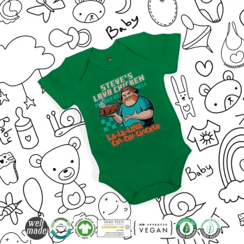 Steves Lava Chicken, Βρεφικό φορμάκι μωρού, ΠΡΑΣΙΝΟ, 100% Organic Cotton, κοντομάνικο