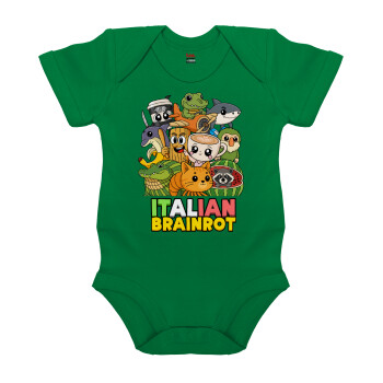 Italian Brainrot friends, Βρεφικό φορμάκι μωρού, ΠΡΑΣΙΝΟ, 100% Organic Cotton, κοντομάνικο