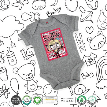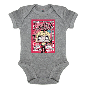 Harley Quinn (Χάρλεϊ Κουίν), Βρεφικό φορμάκι μωρού, 0-18 μηνών, ΓΚΡΙ ΜΕΛΑΝΖΕ, 100% Organic Cotton, κοντομάνικο