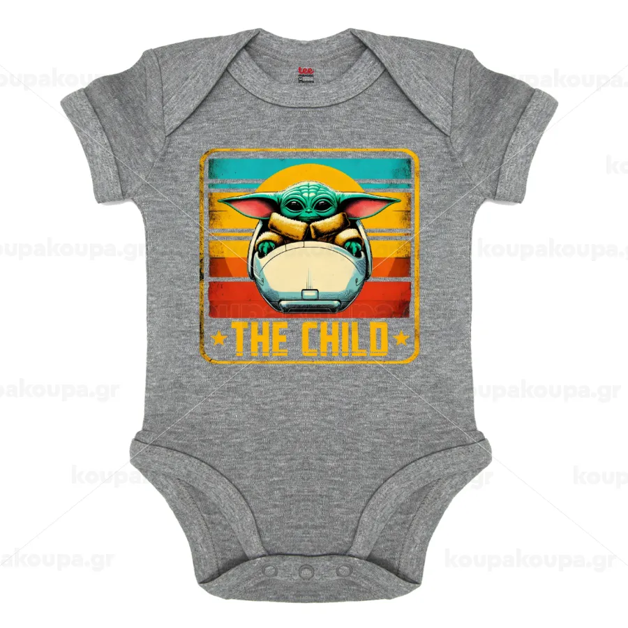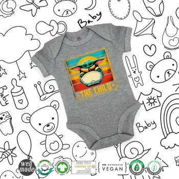 The Child, Βρεφικό φορμάκι μωρού, 0-18 μηνών, ΓΚΡΙ ΜΕΛΑΝΖΕ, 100% Organic Cotton, κοντομάνικο