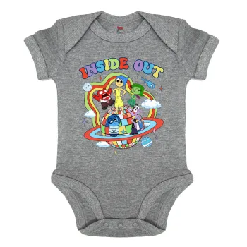 Inside Out, Βρεφικό φορμάκι μωρού, 0-18 μηνών, ΓΚΡΙ ΜΕΛΑΝΖΕ, 100% Organic Cotton, κοντομάνικο