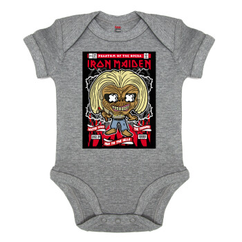 Iron maiden (eddie), Βρεφικό φορμάκι μωρού, 0-18 μηνών, ΓΚΡΙ ΜΕΛΑΝΖΕ, 100% Organic Cotton, κοντομάνικο