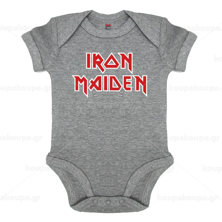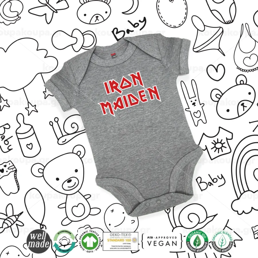Iron maiden, Βρεφικό φορμάκι μωρού, 0-18 μηνών, ΓΚΡΙ ΜΕΛΑΝΖΕ, 100% Organic Cotton, κοντομάνικο