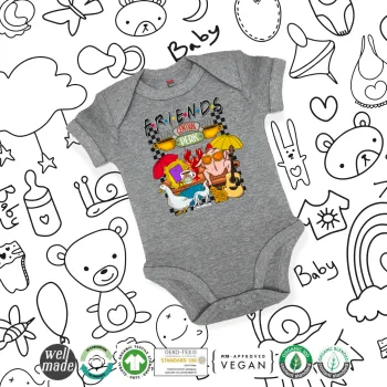 Τα φιλαράκια, Βρεφικό φορμάκι μωρού, 0-18 μηνών, ΓΚΡΙ ΜΕΛΑΝΖΕ, 100% Organic Cotton, κοντομάνικο