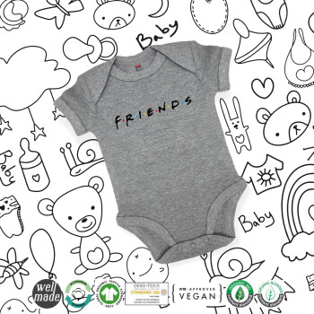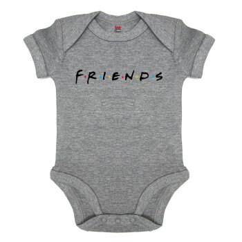 Friends, Βρεφικό φορμάκι μωρού, 0-18 μηνών, ΓΚΡΙ ΜΕΛΑΝΖΕ, 100% Organic Cotton, κοντομάνικο