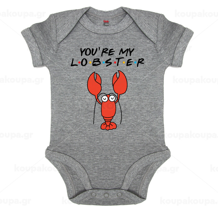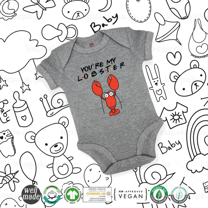 Friends you're my lobster, Βρεφικό φορμάκι μωρού, 0-18 μηνών, ΓΚΡΙ ΜΕΛΑΝΖΕ, 100% Organic Cotton, κοντομάνικο