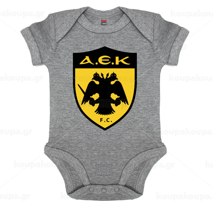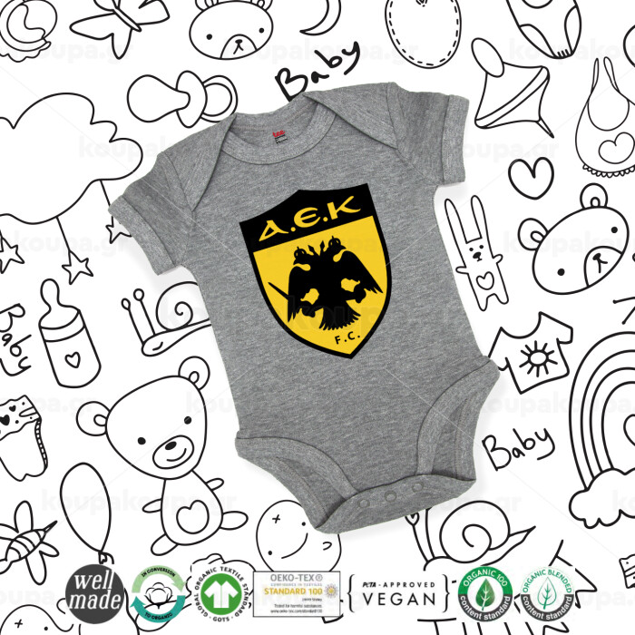 ΑΕΚ, Βρεφικό φορμάκι μωρού, 0-18 μηνών, ΓΚΡΙ ΜΕΛΑΝΖΕ, 100% Organic Cotton, κοντομάνικο