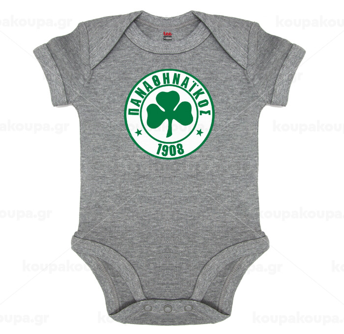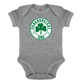 ΠΑΟ Παναθηναϊκός, Βρεφικό φορμάκι μωρού, 0-18 μηνών, ΓΚΡΙ ΜΕΛΑΝΖΕ, 100% Organic Cotton, κοντομάνικο