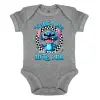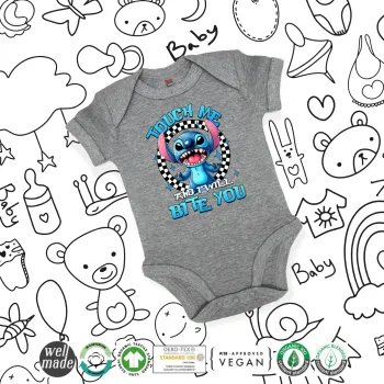 Stitch Touch Me And I Will Bite You, Βρεφικό φορμάκι μωρού, 0-18 μηνών, ΓΚΡΙ ΜΕΛΑΝΖΕ, 100% Organic Cotton, κοντομάνικο