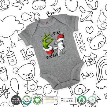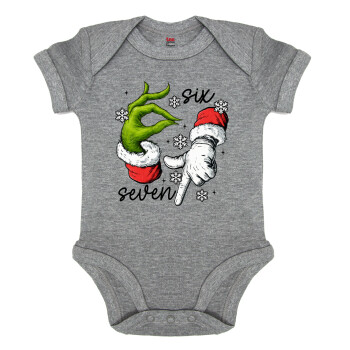 Christmas Meme SIX SEVEN (67), Βρεφικό φορμάκι μωρού, 0-18 μηνών, ΓΚΡΙ ΜΕΛΑΝΖΕ, 100% Organic Cotton, κοντομάνικο