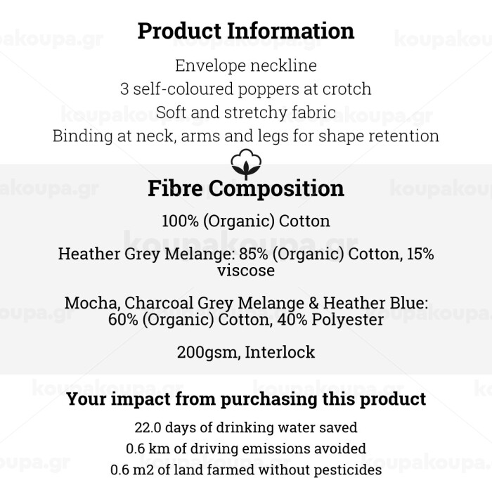 Υλικό: 100% Οργανικό Βαμβάκι, ring-spun και combed για απαλή υφή
