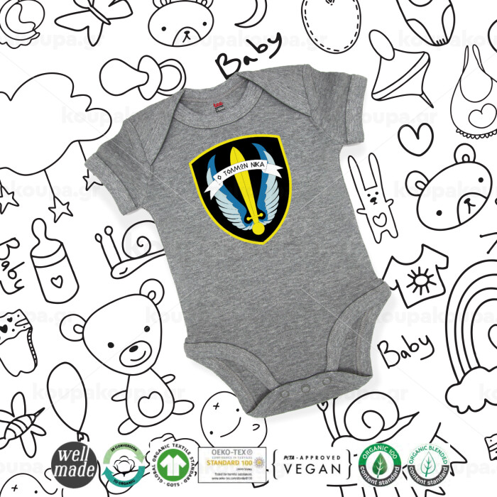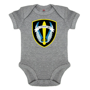 Έμβλημα Μονάδων Καταδρομών Ο Τολμων Νικα - Λοκ, Βρεφικό φορμάκι μωρού, 0-18 μηνών, ΓΚΡΙ ΜΕΛΑΝΖΕ, 100% Organic Cotton, κοντομάνικο