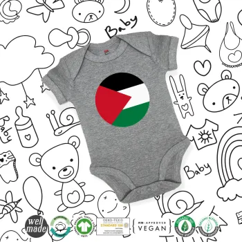 Σημαία Παλαιστίνης, Βρεφικό φορμάκι μωρού, 0-18 μηνών, ΓΚΡΙ ΜΕΛΑΝΖΕ, 100% Organic Cotton, κοντομάνικο