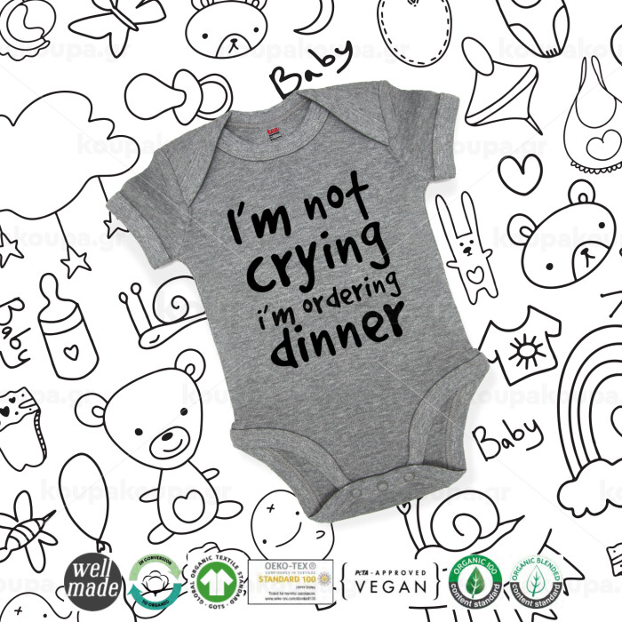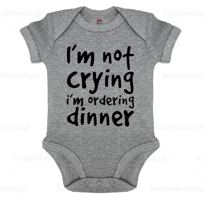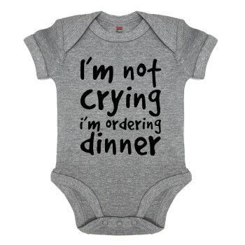I'm Not Crying I'm Ordering Dinner, Βρεφικό φορμάκι μωρού, 0-18 μηνών, ΓΚΡΙ ΜΕΛΑΝΖΕ, 100% Organic Cotton, κοντομάνικο