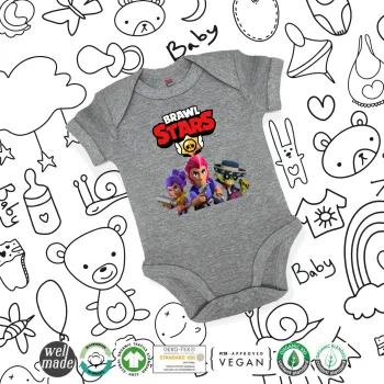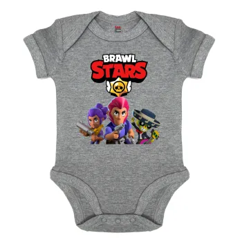 Brawl Stars Blue, Βρεφικό φορμάκι μωρού, 0-18 μηνών, ΓΚΡΙ ΜΕΛΑΝΖΕ, 100% Organic Cotton, κοντομάνικο