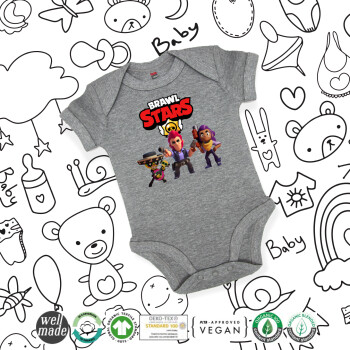 Brawl Stars Desert, Βρεφικό φορμάκι μωρού, 0-18 μηνών, ΓΚΡΙ ΜΕΛΑΝΖΕ, 100% Organic Cotton, κοντομάνικο