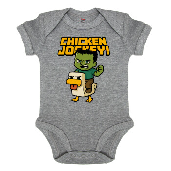 Chicken Jockey, Βρεφικό φορμάκι μωρού, 0-18 μηνών, ΓΚΡΙ ΜΕΛΑΝΖΕ, 100% Organic Cotton, κοντομάνικο