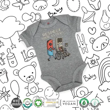 Respect your Elders, Βρεφικό φορμάκι μωρού, 0-18 μηνών, ΓΚΡΙ ΜΕΛΑΝΖΕ, 100% Organic Cotton, κοντομάνικο