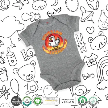 Steve's Lava Chicken, Βρεφικό φορμάκι μωρού, 0-18 μηνών, ΓΚΡΙ ΜΕΛΑΝΖΕ, 100% Organic Cotton, κοντομάνικο