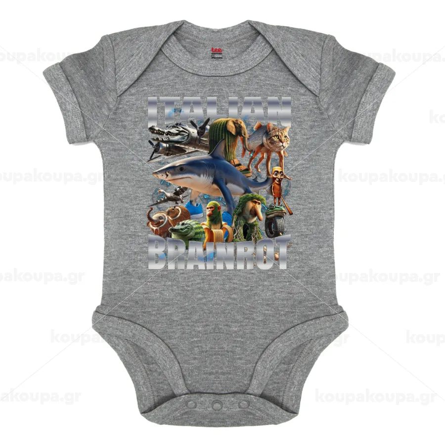 Italian Brainrot, Βρεφικό φορμάκι μωρού, 0-18 μηνών, ΓΚΡΙ ΜΕΛΑΝΖΕ, 100% Organic Cotton, κοντομάνικο