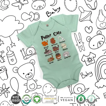 Potter Cats, Βρεφικό φορμάκι μωρού, 0-18 μηνών, mint (Μέντα), 100% Organic Cotton, κοντομάνικο