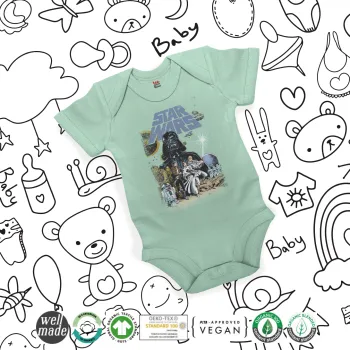 Star Wars, Βρεφικό φορμάκι μωρού, 0-18 μηνών, mint (Μέντα), 100% Organic Cotton, κοντομάνικο