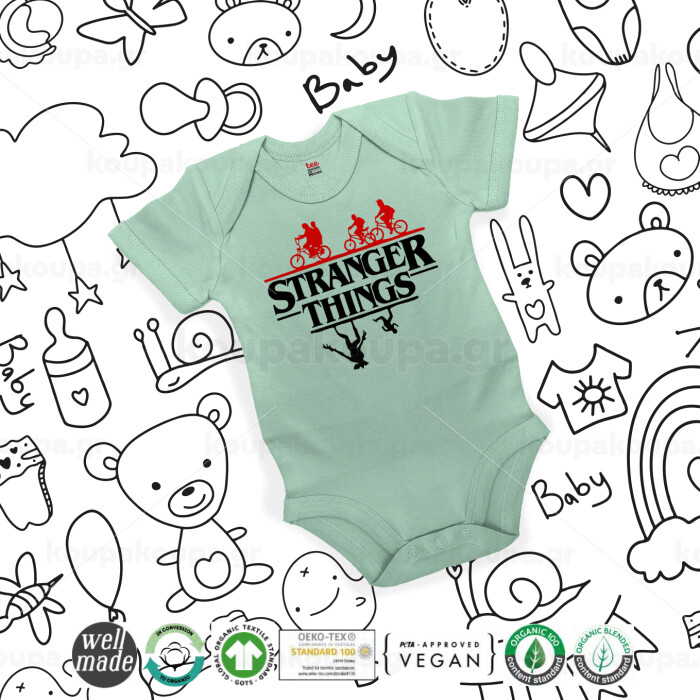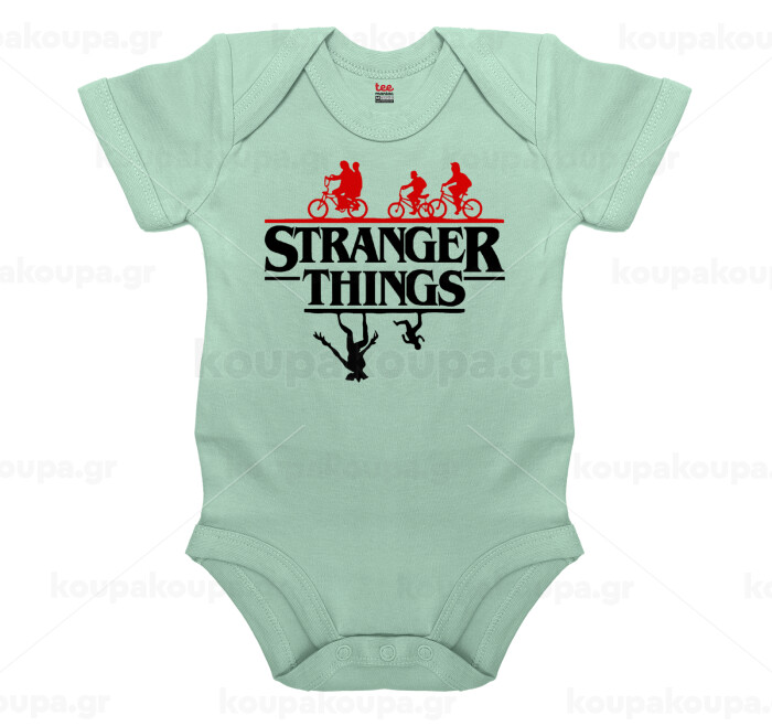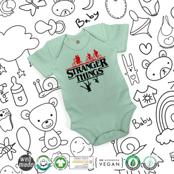 Stranger Things upside down, Βρεφικό φορμάκι μωρού, 0-18 μηνών, mint (Μέντα), 100% Organic Cotton, κοντομάνικο