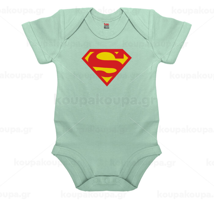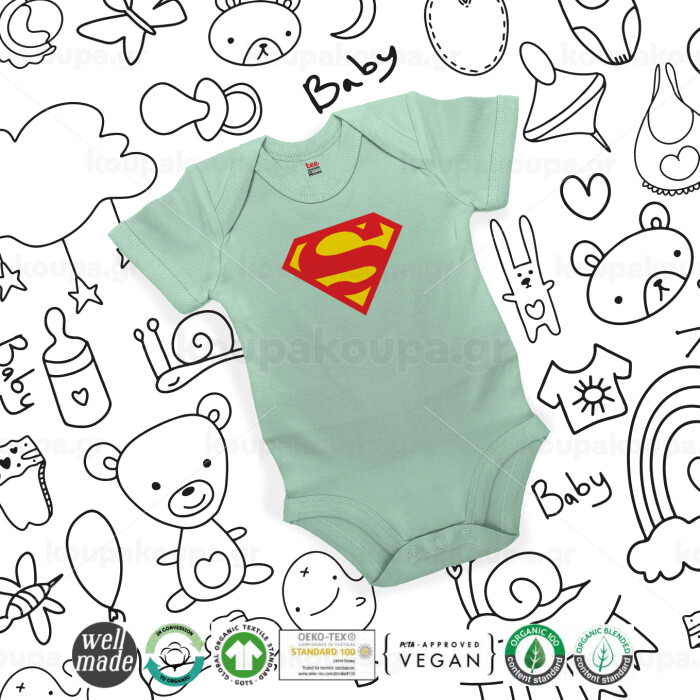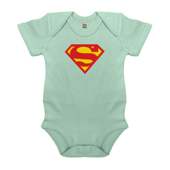 Superman, Βρεφικό φορμάκι μωρού, 0-18 μηνών, mint (Μέντα), 100% Organic Cotton, κοντομάνικο