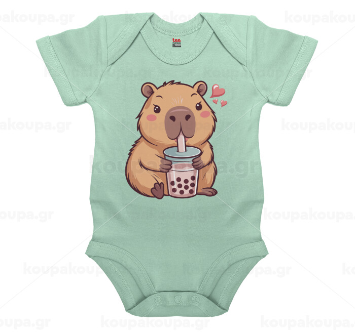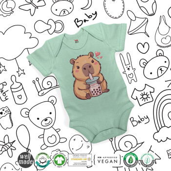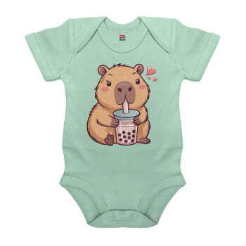 Capybara Bubble Tea, Βρεφικό φορμάκι μωρού, 0-18 μηνών, mint (Μέντα), 100% Organic Cotton, κοντομάνικο