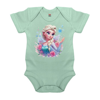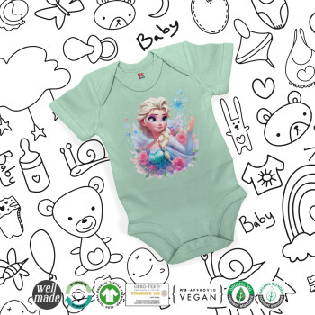 Elsa Princess, Βρεφικό φορμάκι μωρού, 0-18 μηνών, mint (Μέντα), 100% Organic Cotton, κοντομάνικο