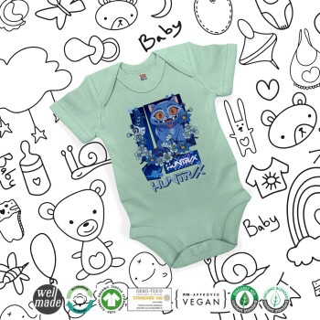 Huntrix Derpy the blue tiger, Βρεφικό φορμάκι μωρού, 0-18 μηνών, mint (Μέντα), 100% Organic Cotton, κοντομάνικο