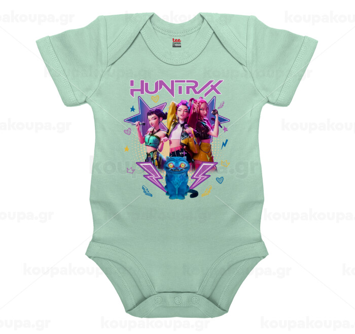 Huntrix K-pop series, Βρεφικό φορμάκι μωρού, 0-18 μηνών, mint (Μέντα), 100% Organic Cotton, κοντομάνικο