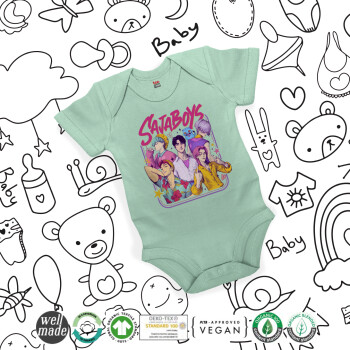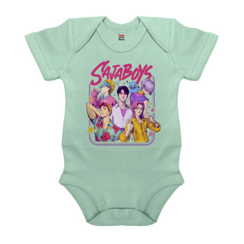 Huntrix Saja Boys, Βρεφικό φορμάκι μωρού, 0-18 μηνών, mint (Μέντα), 100% Organic Cotton, κοντομάνικο