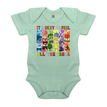 Inside Out It's Okay To Feel All The Feels , Βρεφικό φορμάκι μωρού, 0-18 μηνών, mint (Μέντα), 100% Organic Cotton, κοντομάνικο
