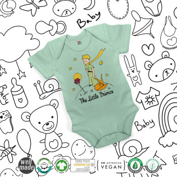 Ο μικρός πρίγκιπας classic, Βρεφικό φορμάκι μωρού, 0-18 μηνών, mint (Μέντα), 100% Organic Cotton, κοντομάνικο