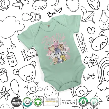 Stray Kids Pink, Βρεφικό φορμάκι μωρού, 0-18 μηνών, mint (Μέντα), 100% Organic Cotton, κοντομάνικο