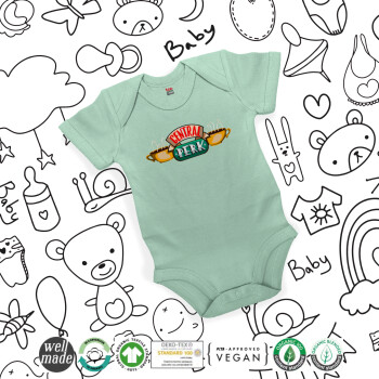 Central perk, Βρεφικό φορμάκι μωρού, 0-18 μηνών, mint (Μέντα), 100% Organic Cotton, κοντομάνικο