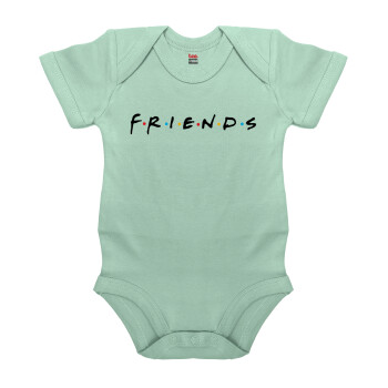 Friends, Βρεφικό φορμάκι μωρού, 0-18 μηνών, mint (Μέντα), 100% Organic Cotton, κοντομάνικο