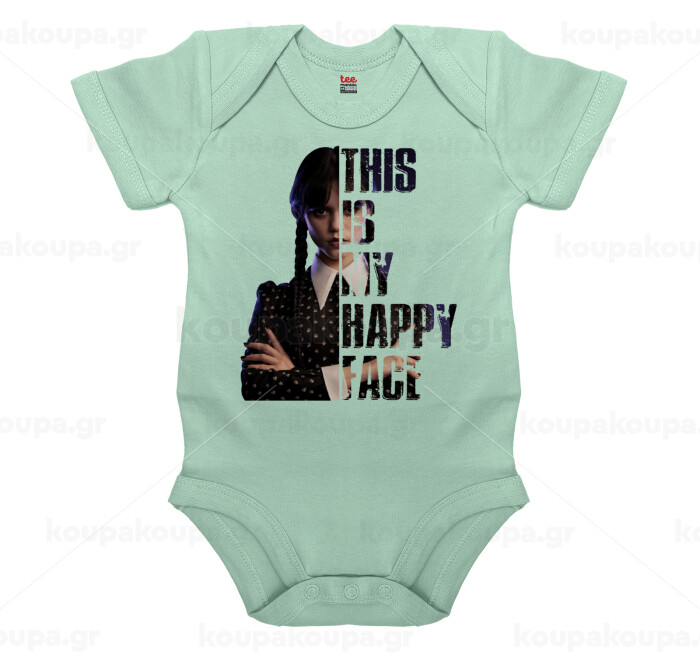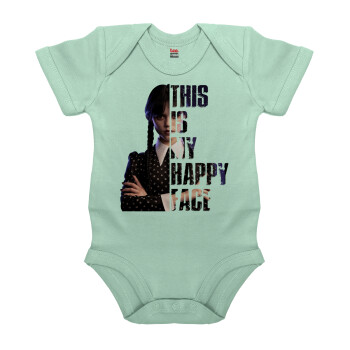 Wednesday, This is my happy face, Βρεφικό φορμάκι μωρού, 0-18 μηνών, mint (Μέντα), 100% Organic Cotton, κοντομάνικο