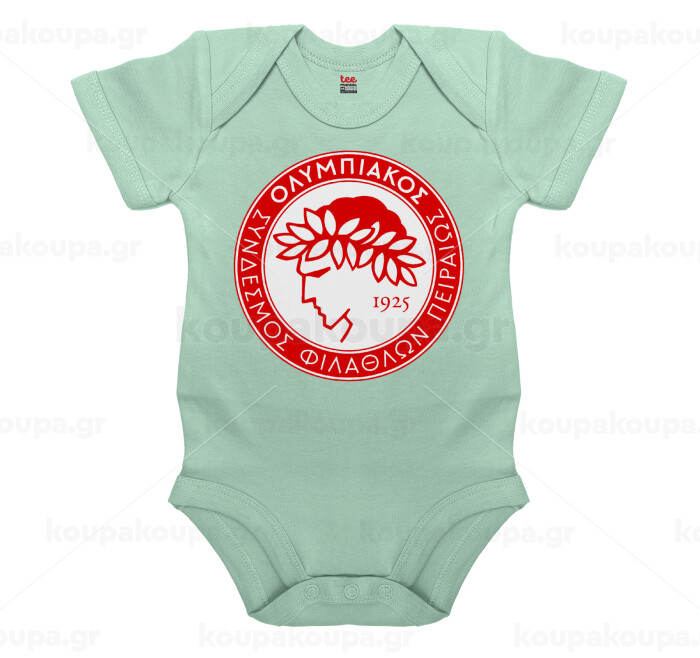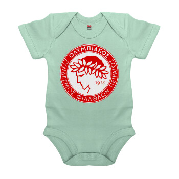 Ολυμπιακός, Βρεφικό φορμάκι μωρού, 0-18 μηνών, mint (Μέντα), 100% Organic Cotton, κοντομάνικο