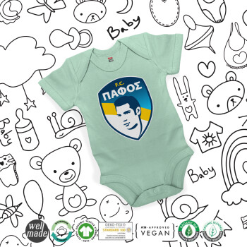 Πάφος FC, Βρεφικό φορμάκι μωρού, 0-18 μηνών, mint (Μέντα), 100% Organic Cotton, κοντομάνικο