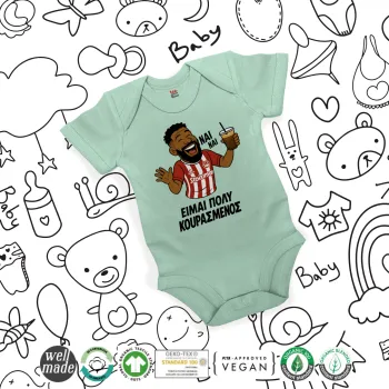 Ροντινέι, "ΠΟΛΥ ΚΟΥΡΑΣΜΕΝΟΣ", Βρεφικό φορμάκι μωρού, 0-18 μηνών, mint (Μέντα), 100% Organic Cotton, κοντομάνικο