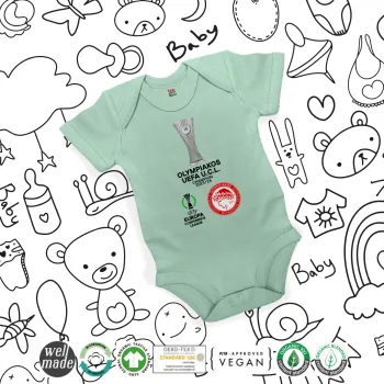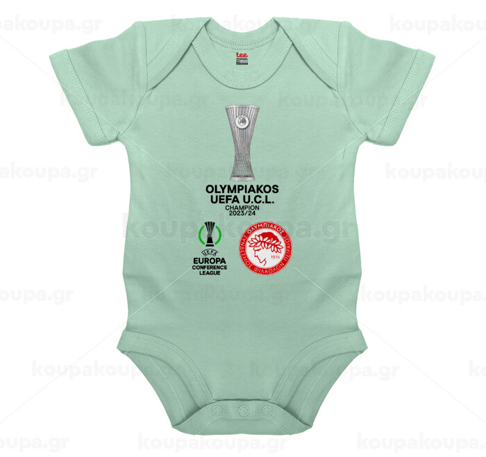Ολυμπιακός νικητής UEFA Europa Conference League Champion 2023/24, Βρεφικό φορμάκι μωρού, 0-18 μηνών, mint (Μέντα), 100% Organic Cotton, κοντομάνικο